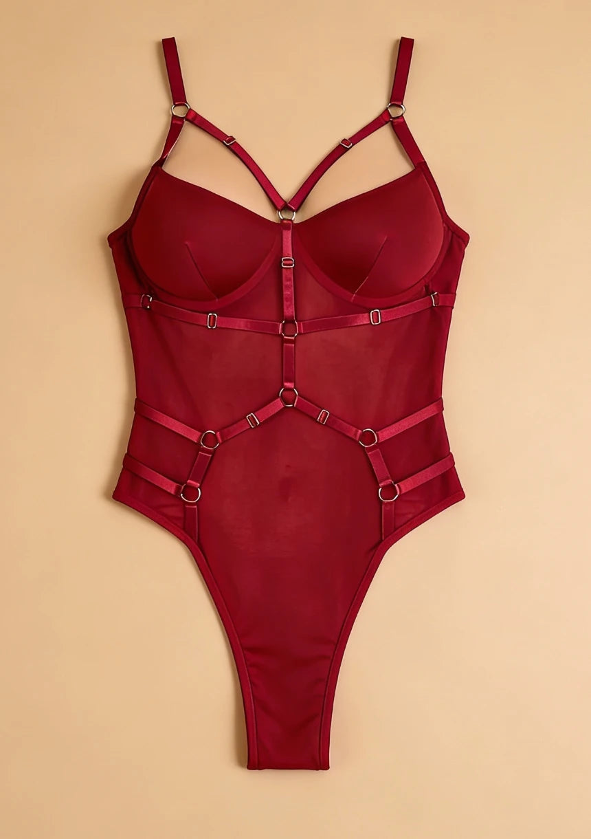 Odkryj bodystocking, który harmonijnie łączy elegancję z odważnym stylem. Stylowe paski akcentują Twoje atuty, a regulowane elementy gwarantują idealne dopasowanie, co sprawia, że poczujesz się pewnie i komfortowo.