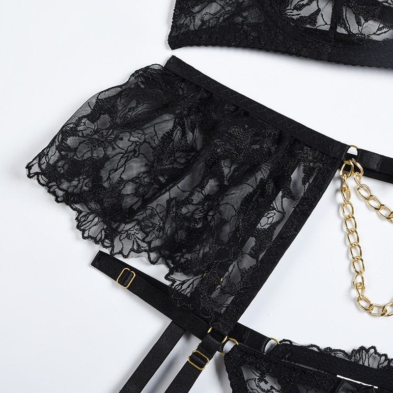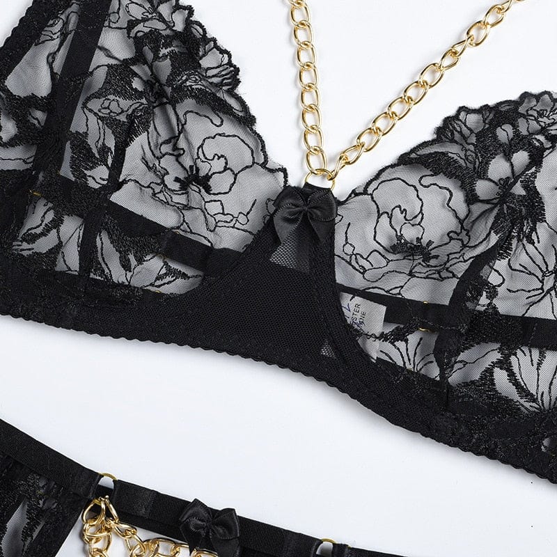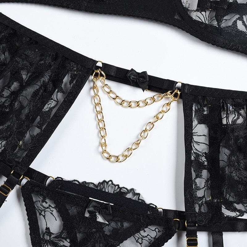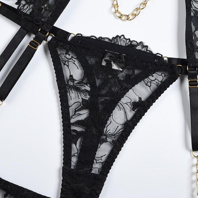 - Komplet zawierający biustonosz, pas do pończoch, majtki oraz podwiązki - doskonały na szczególne chwile.