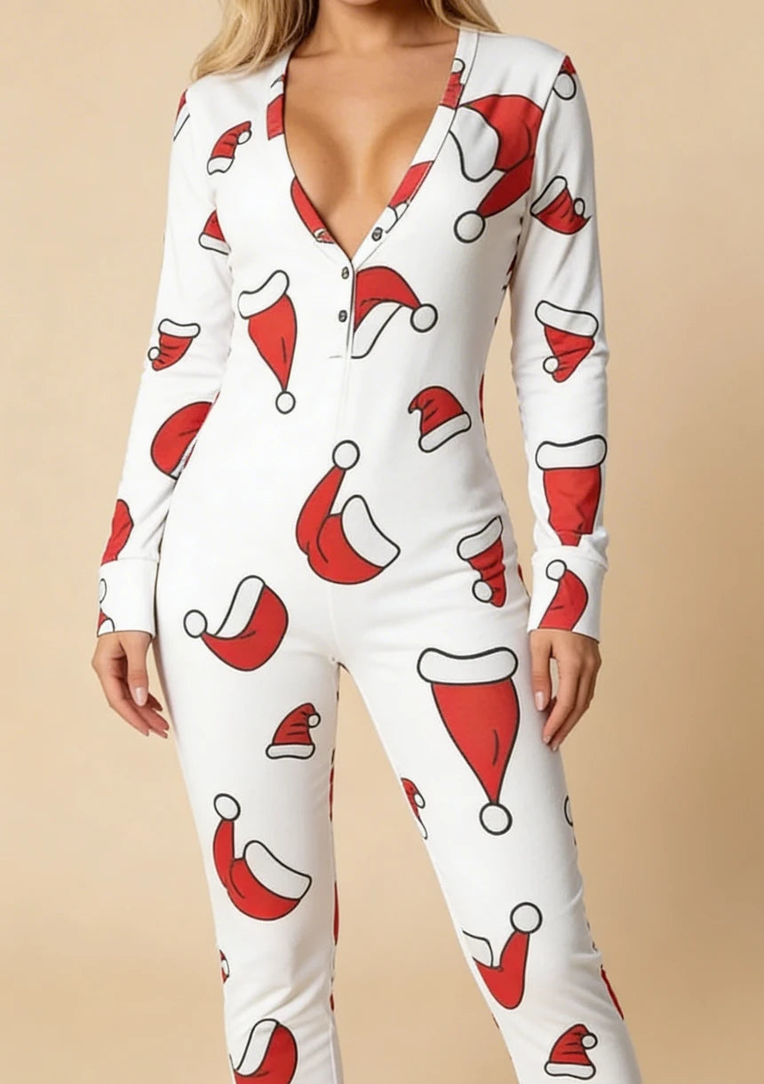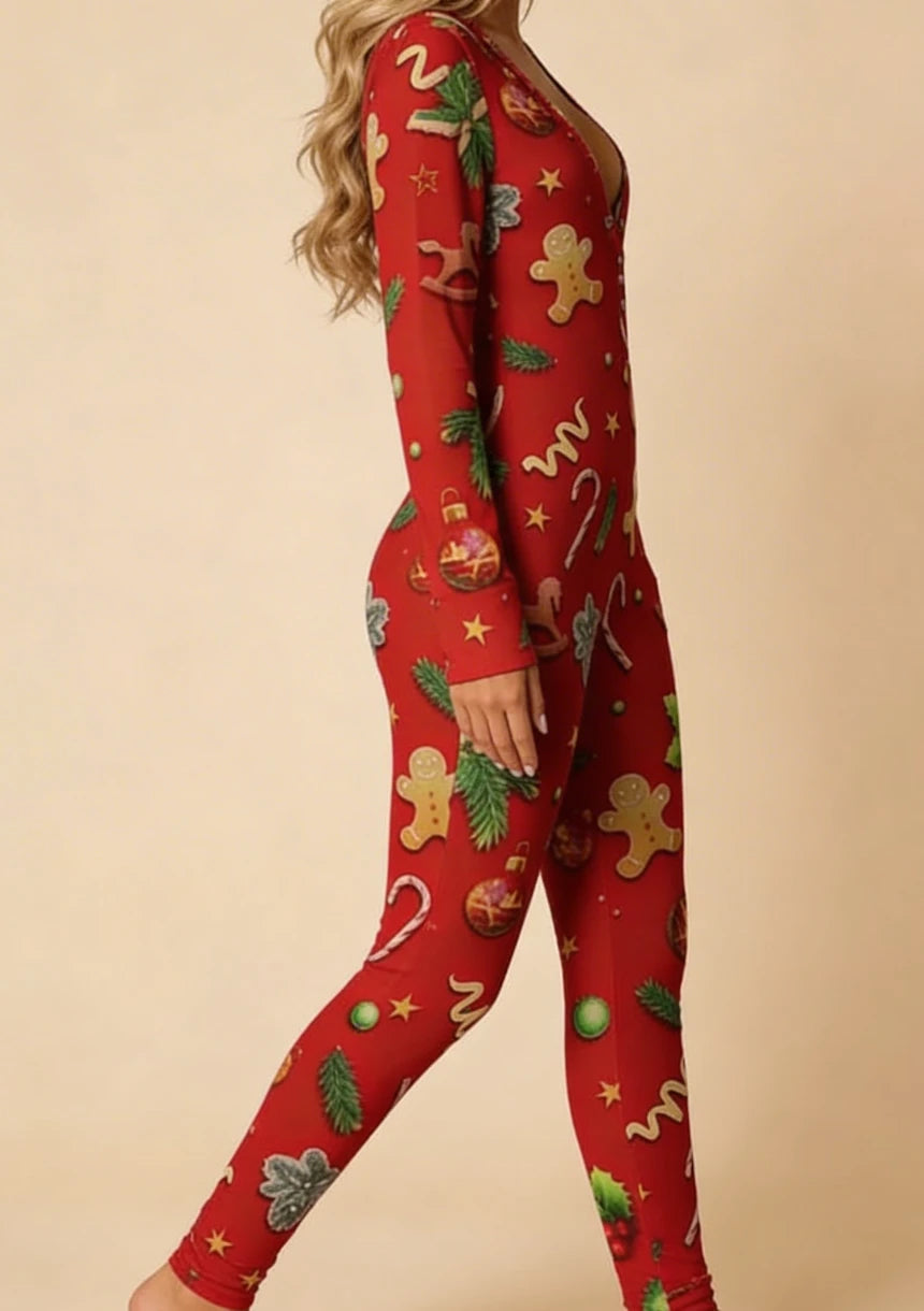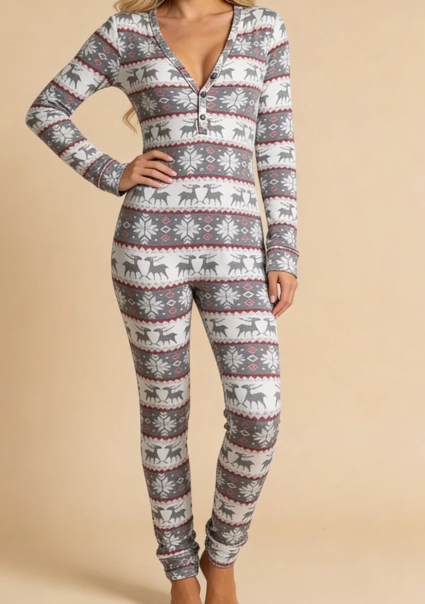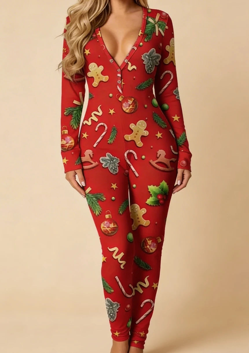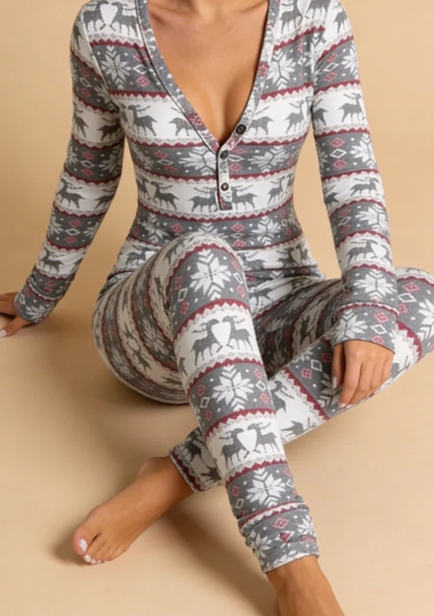 Jednoczęściowa piżama damska z motywem świątecznym