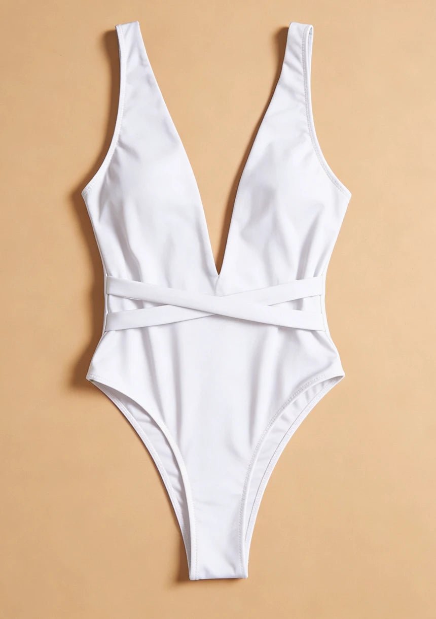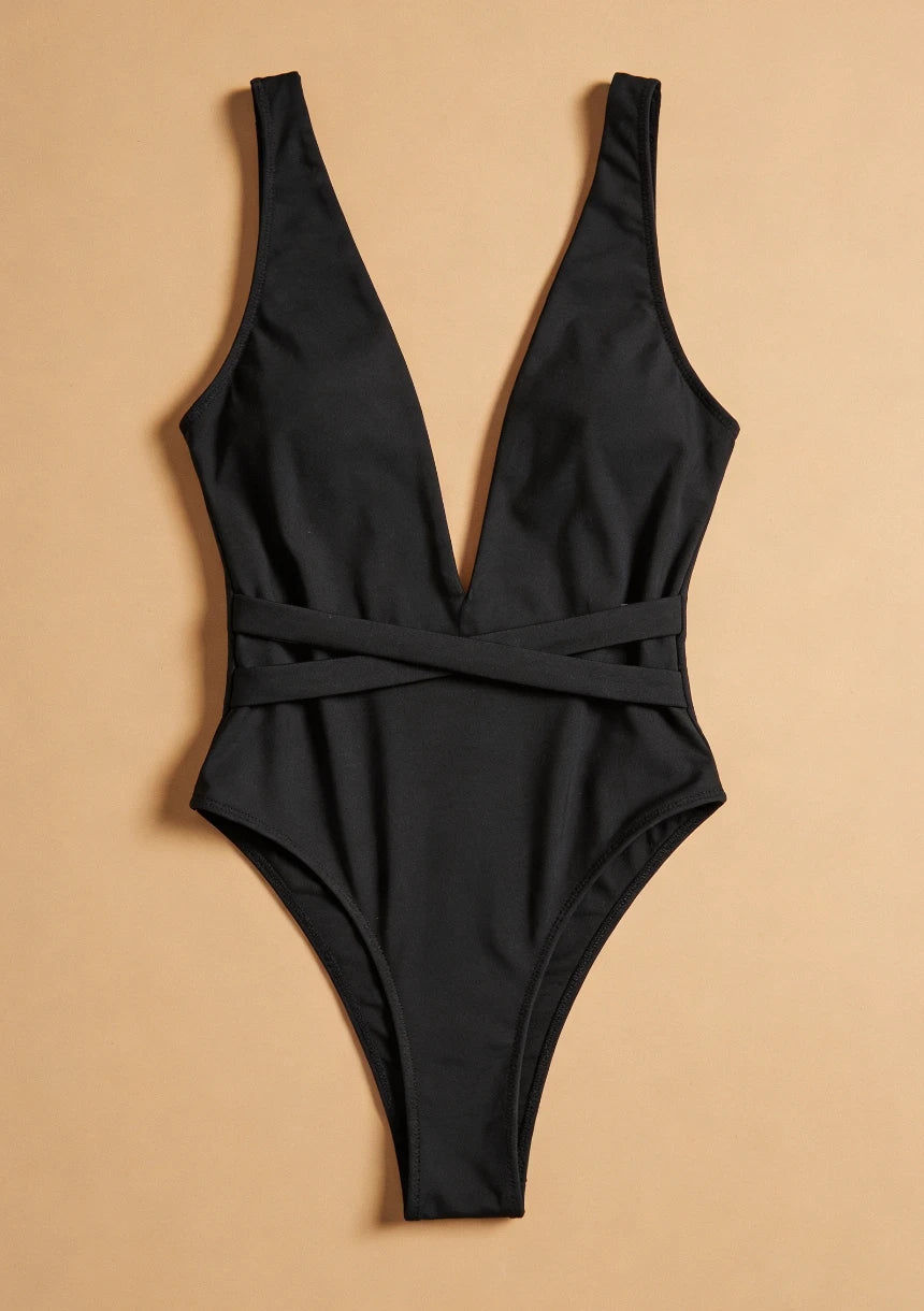 Znajdź swój styl na plaży lub basenie z tym jednoczęściowym kostiumem kąpielowym, który łączy elegancję z funkcjonalnością. Wyrazisty dekolt oraz skrzyżowane ramiączka na plecach sprawiają, że będziesz wyglądać olśniewająco, a jednocześnie czuć się swobodnie.