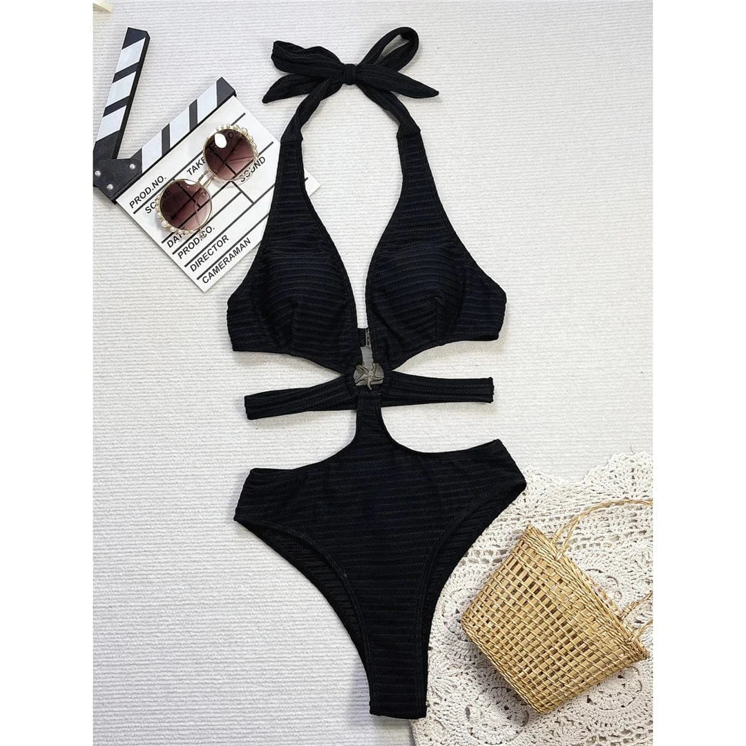 Ten jednoczęściowy kostium kąpielowy to znakomita opcja na plażę lub basen, łącząca modny styl z praktycznością. Dzięki dekoracyjnym detalom i wycięciom, stworzysz niepowtarzalny look, który przyciągnie uwagę.