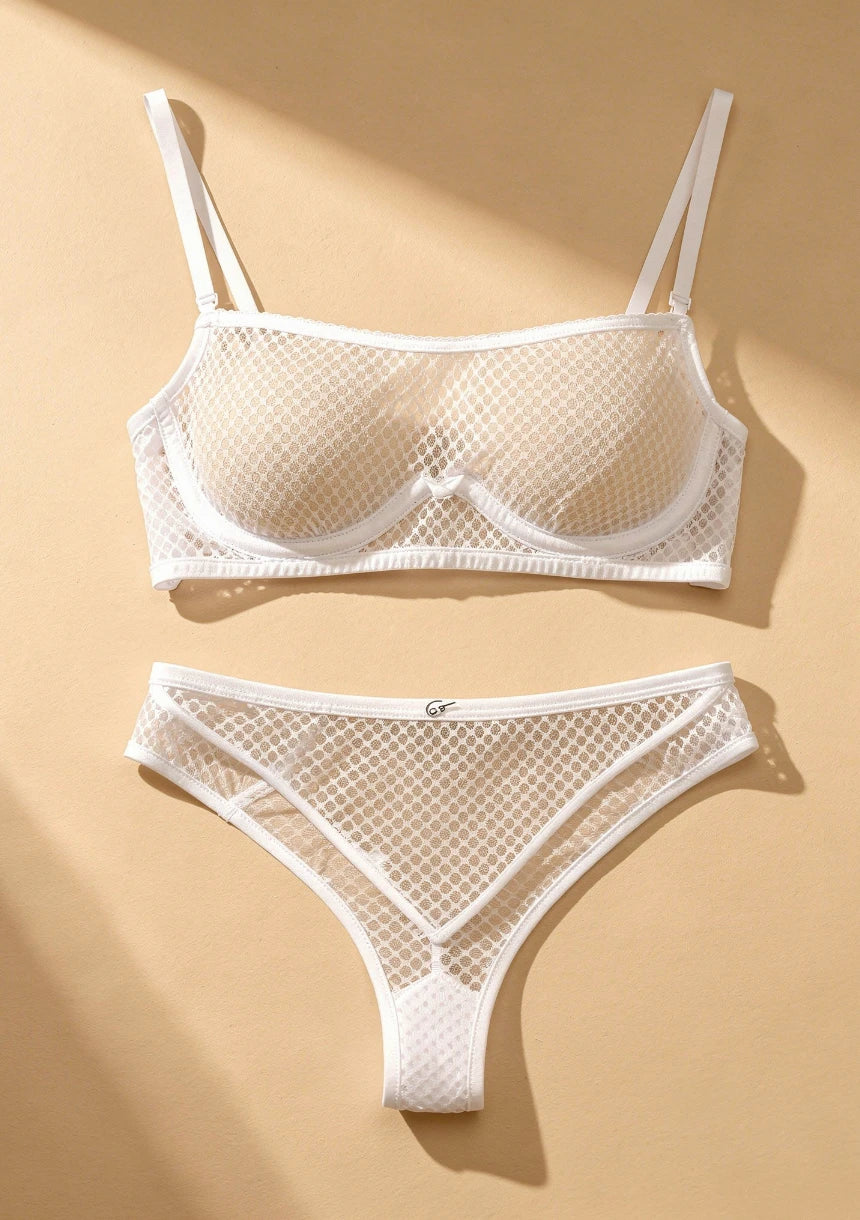 Komplet bielizny z dekoracyjnej siateczki