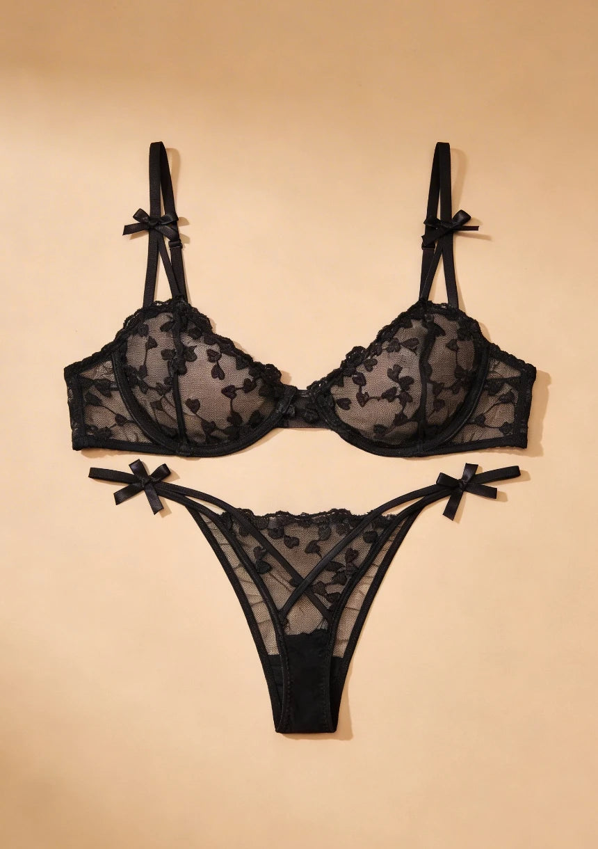 - Kompletny zestaw - Zawiera biustonosz oraz stringi, tworząc spójną kompozycję.