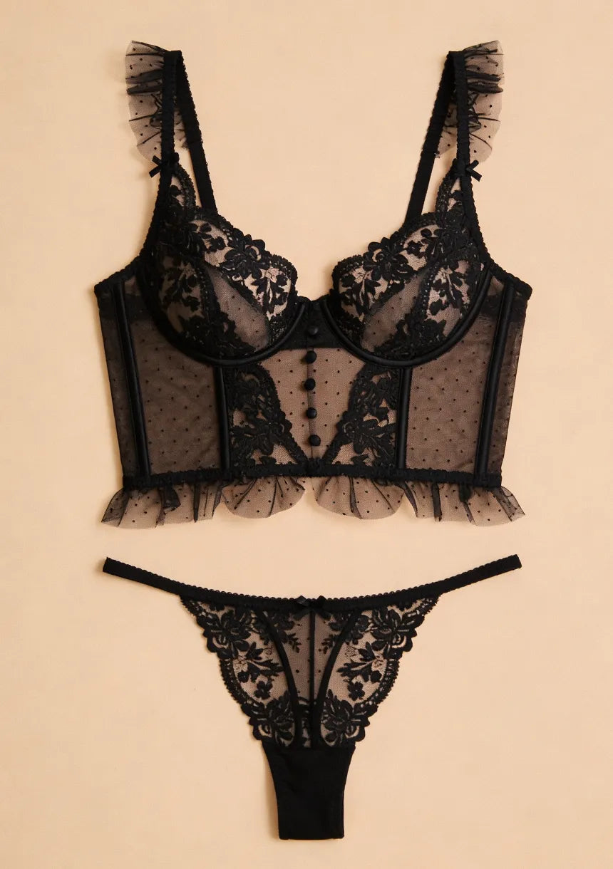 Koronkowy komplet bielizny świetnie układa się na ciele i podkreśla kobiece krągłości. Zaprezentowany komplet bielizny koronkowej z zabudowanym mostkiem, ze względu na komfortowy krój oraz klasyczny kolor, sprawdzi się do noszenia na co dzień, jak również na specjalne okazje. Bielizna wykonana jest z wysokiej jakości materiałów z dbałością o każdy detal.