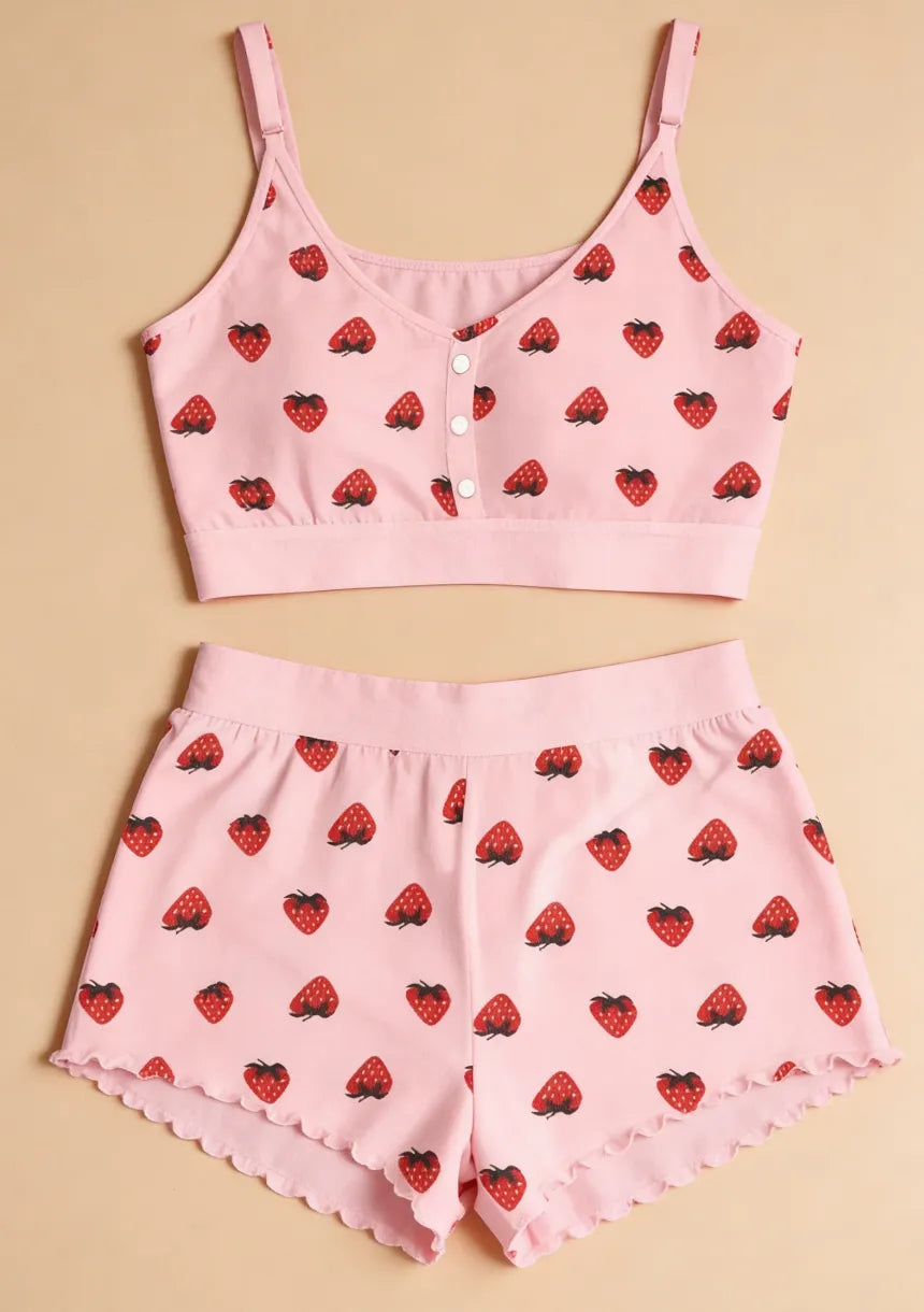 Krótka piżama damska z motywem truskawek
