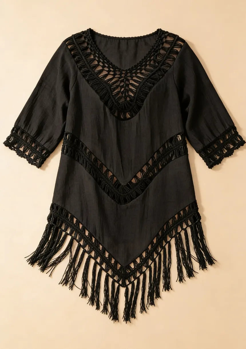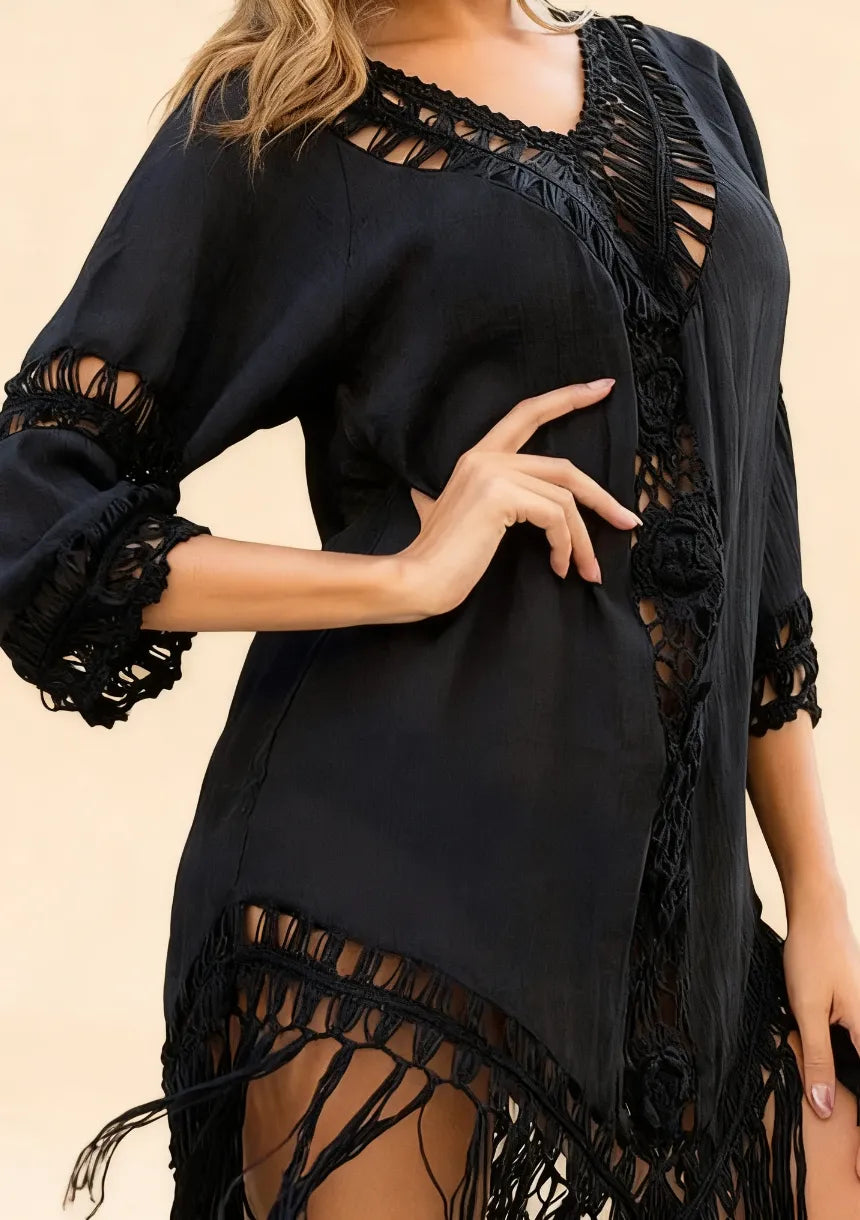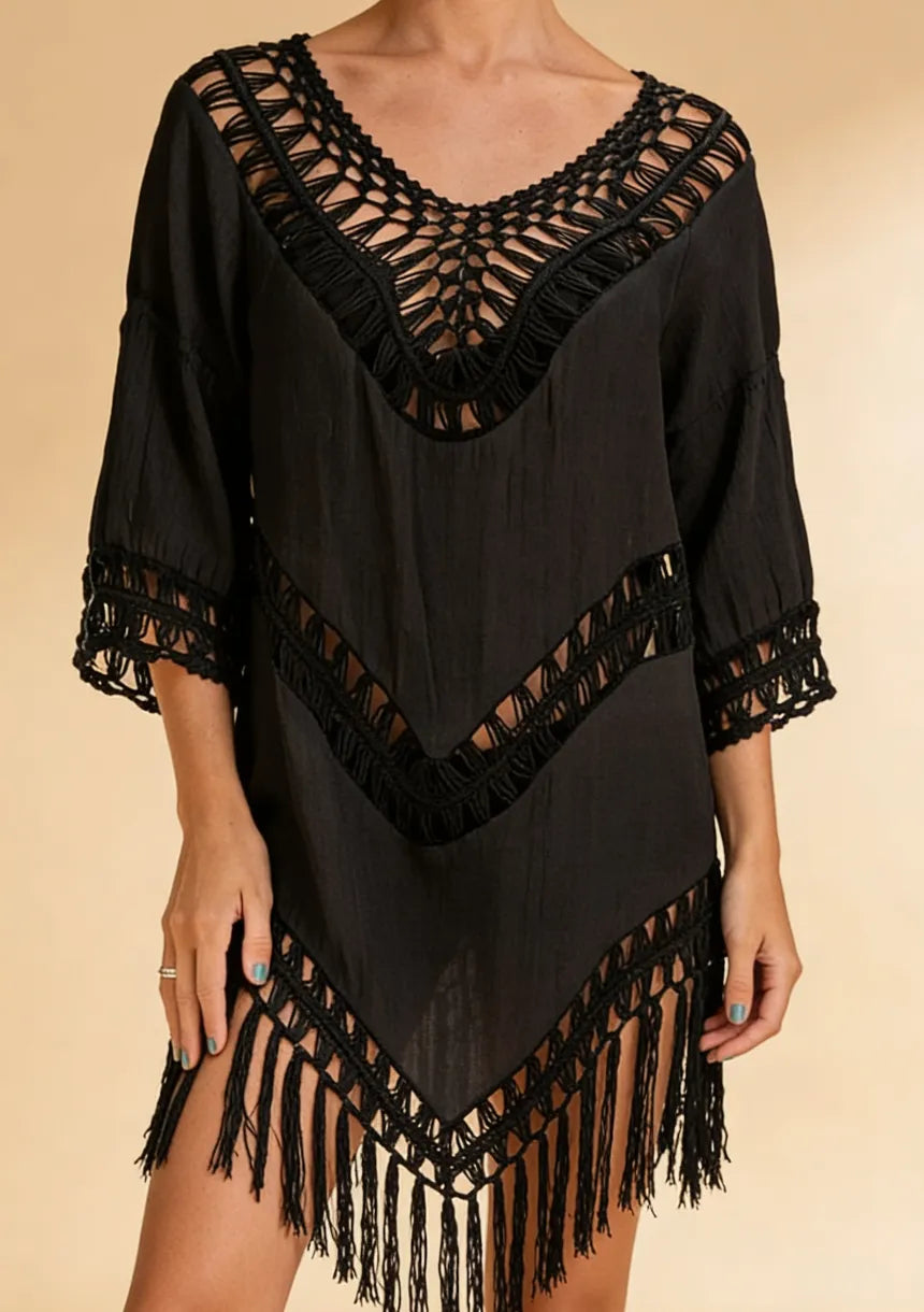 Krótka sukienka plażowa w stylu boho z frędzlami