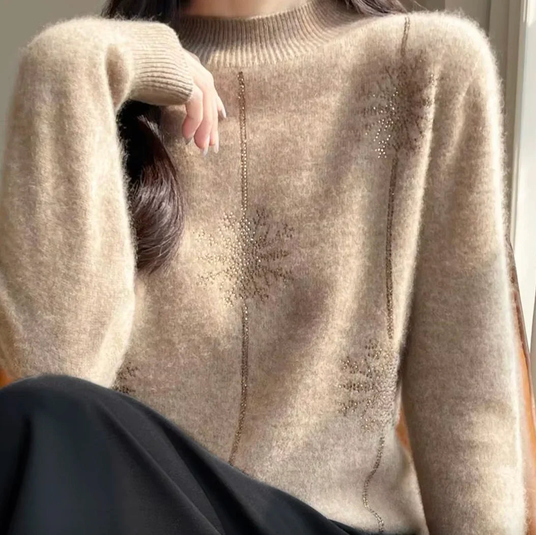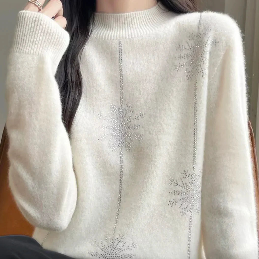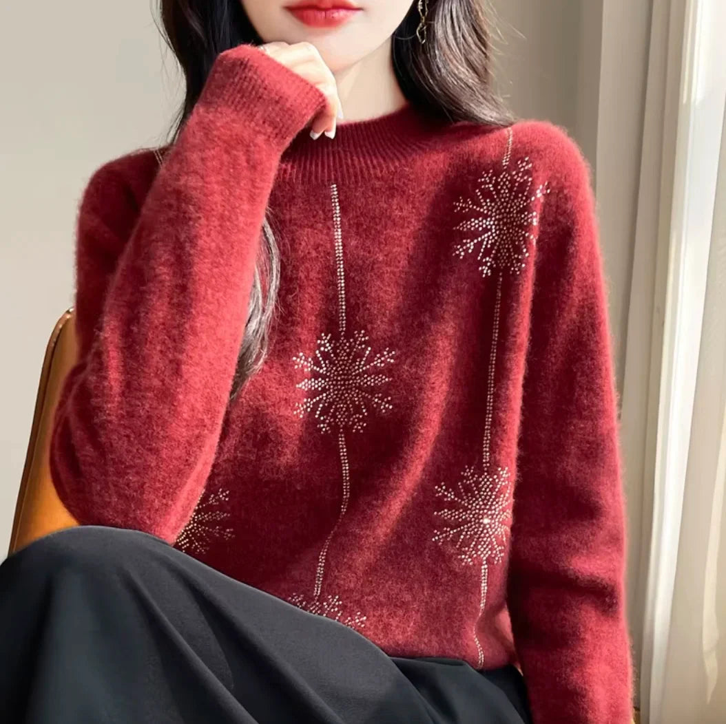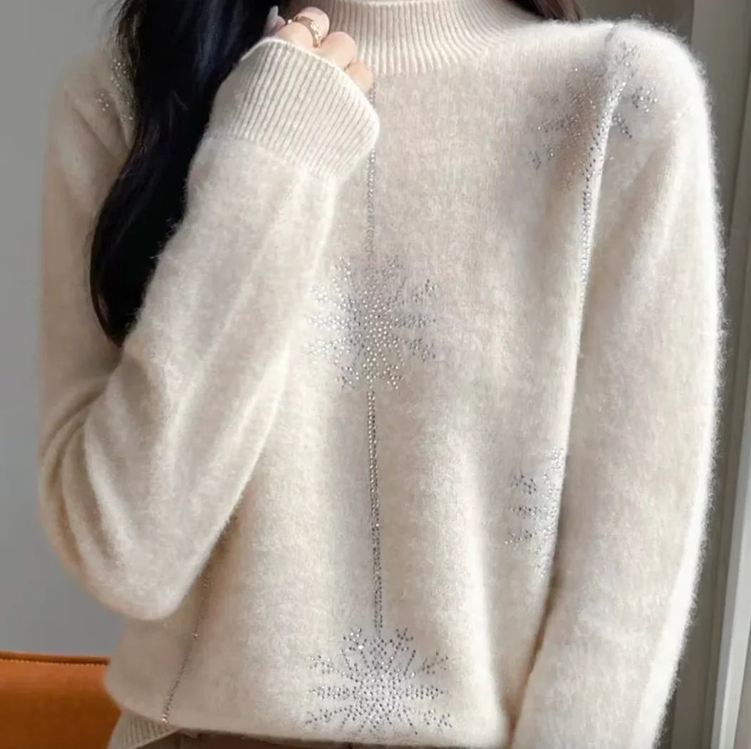 Wprowadź do swojej zimowej garderoby odrobinę świątecznej magii dzięki wyjątkowo miękkiemu sweterkowi ozdobionemu połyskującymi śnieżynkami z cyrkonii. Wykonany z przyjemnej w dotyku dzianiny, zapewnia komfort noszenia przez cały dzień – idealny zarówno na rodzinne spotkania, jak i świąteczne sesje zdjęciowe.