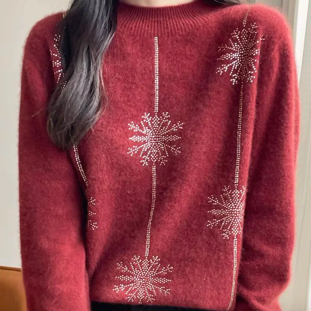 Subtelny blask cyrkonii dodaje całości elegancji, a świąteczny motyw śnieżynek tworzy niepowtarzalny, zimowy klimat. Sweterek świetnie prezentuje się w połączeniu z klasycznymi jeansami, spódnicą czy eleganckimi spodniami.