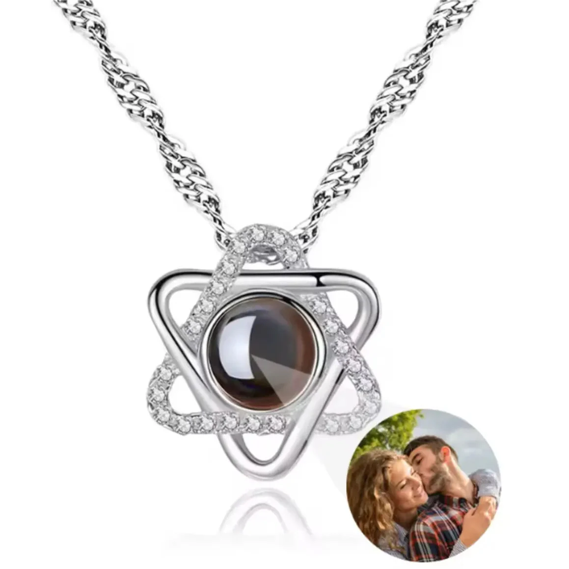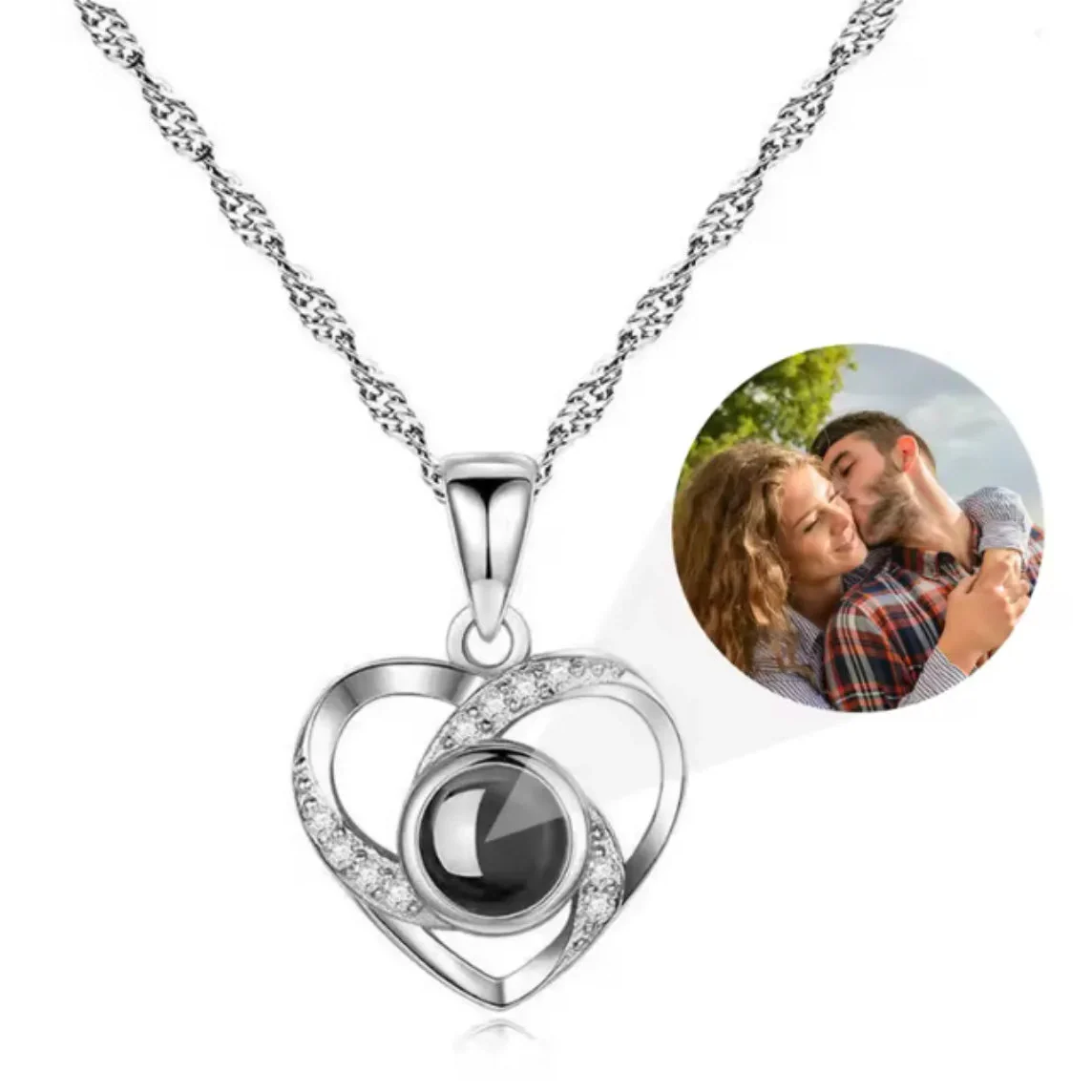 Stwórz niezapomnianą pamiątkę! Nasz personalizowany naszyjnik to nie tylko elegancka biżuteria, ale sekretny projektor, który skrywa najcenniejsze dla Ciebie wspomnienie.