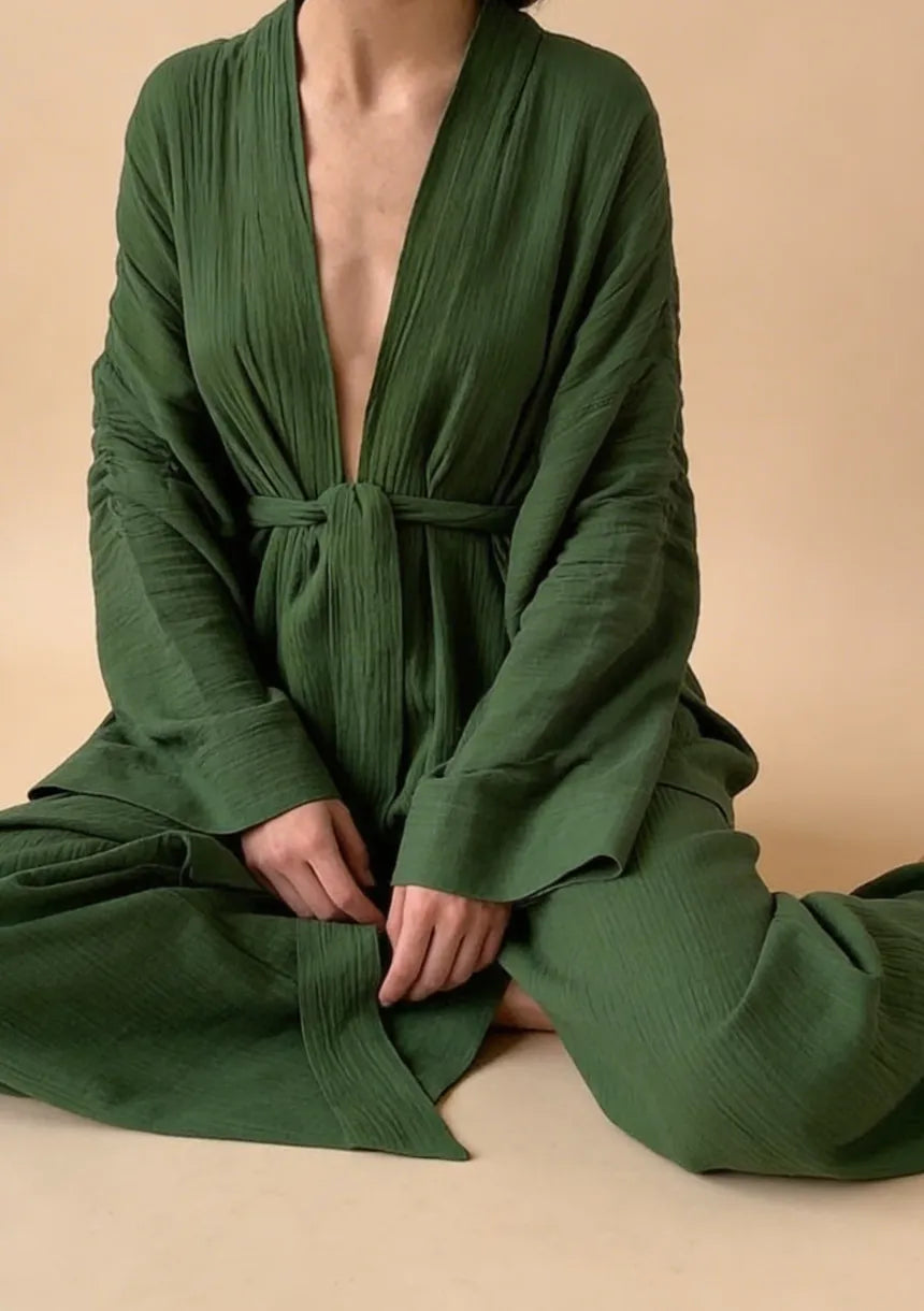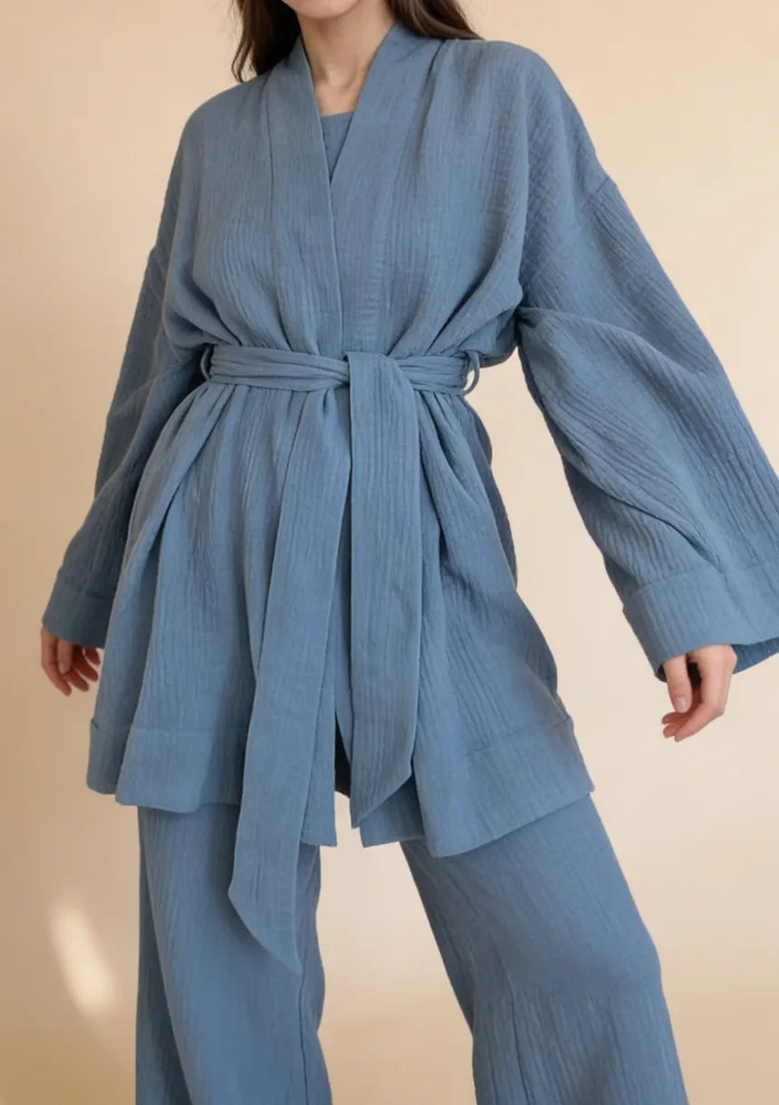 Piżama damska o kroju kimona to połączenie klasycznej piżamy oraz nowoczesnego fasonu. Zaprezentowana piżama dwuczęściowa składa się z góry w formie kimona oraz długich, luźnych spodni. Przyjemny w dotyku, przewiewny materiał to gwarancja komfortowego snu każdej nocy. Na Maybella.pl znajdziesz wiele oryginalnych modeli piżam dla kobiet. Przekonaj się sama i zamów z darmową dostawą już teraz!
