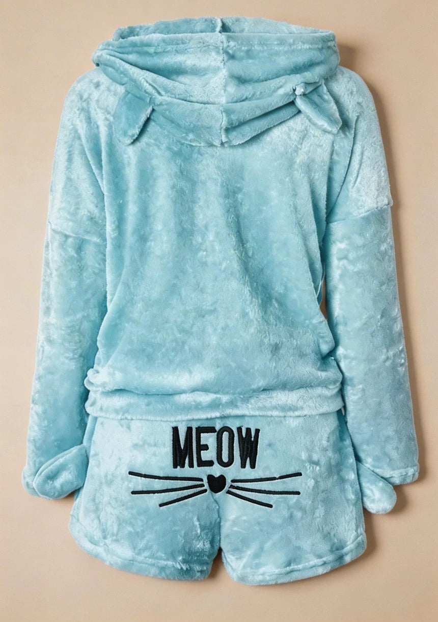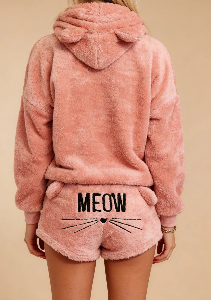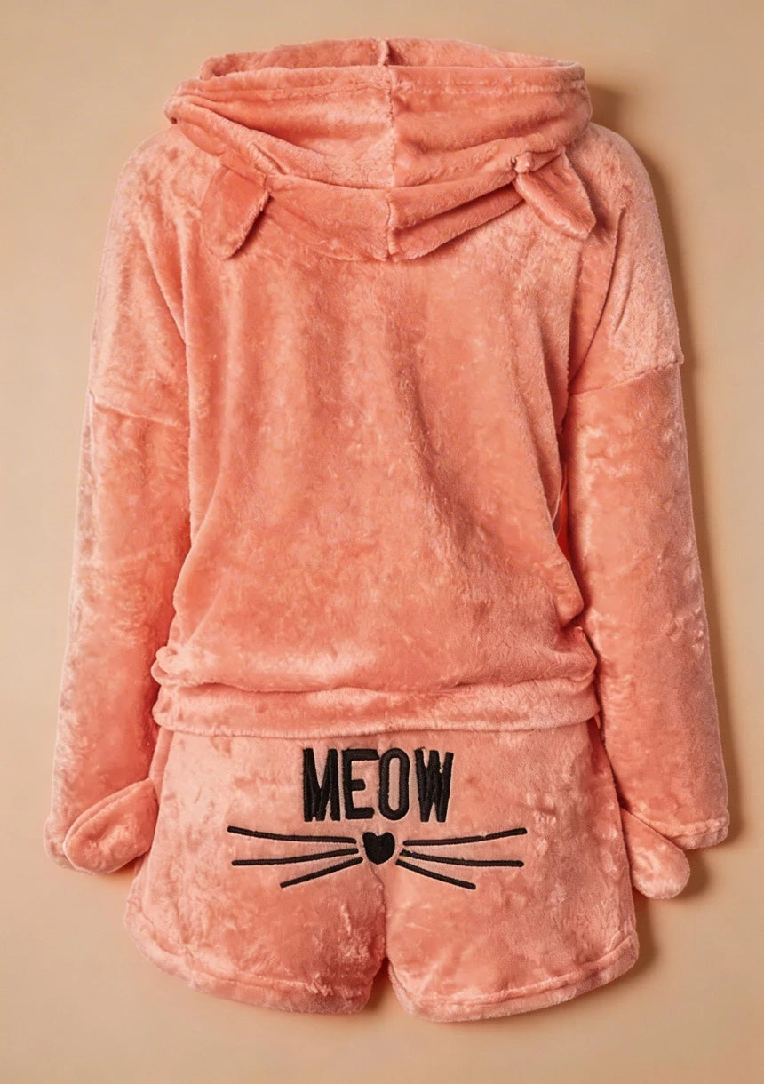 Puchaty komplet odzieży domowej z motywem kotka