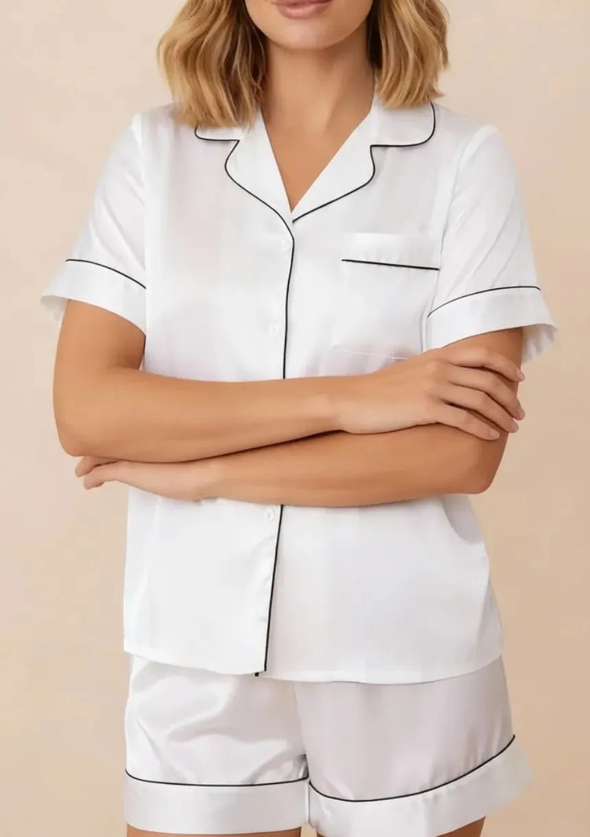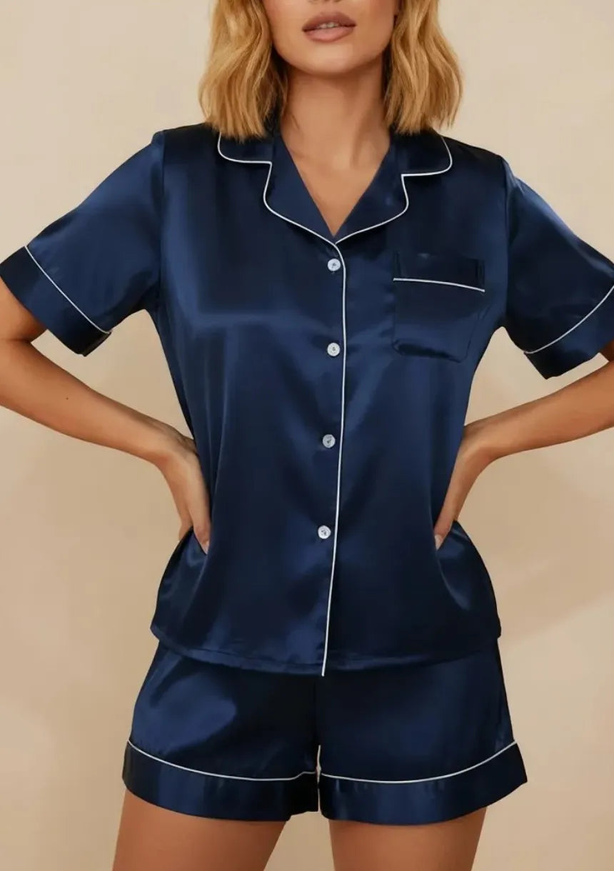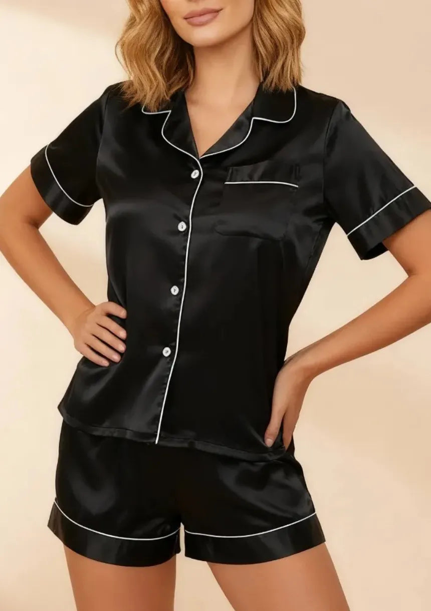 Satynowa piżama damska prezentuje się bardzo elegancko i stylowo. Komplet do spania wykonany został z delikatnej satyny. Koszulka nocna satynowa w komplecie ze spodenkami to uniwersalny element kobiecej garderoby. Piżama jest przyjemna w dotyku i przyjazna dla skóry, przez co zapewnia spokojny sen.