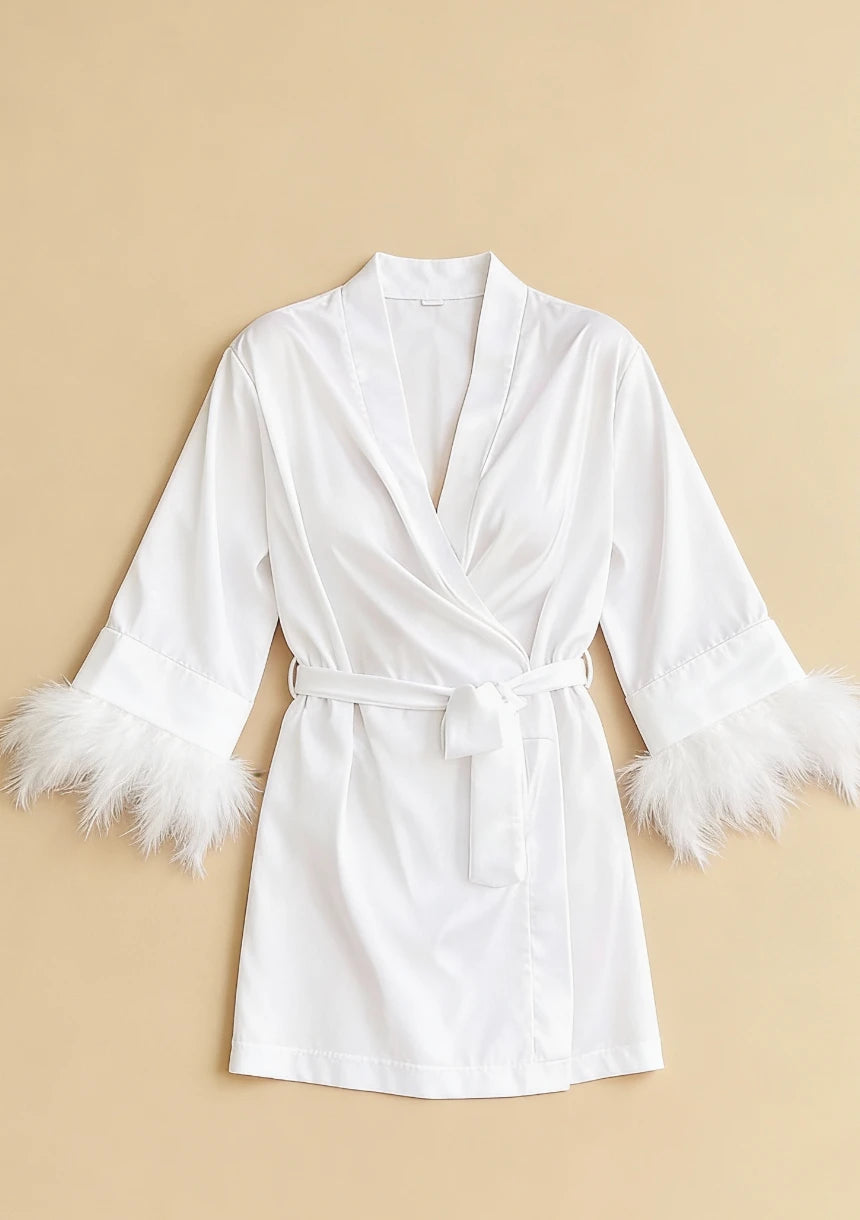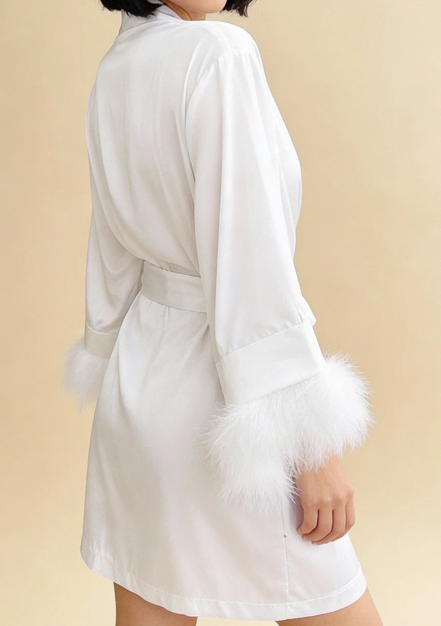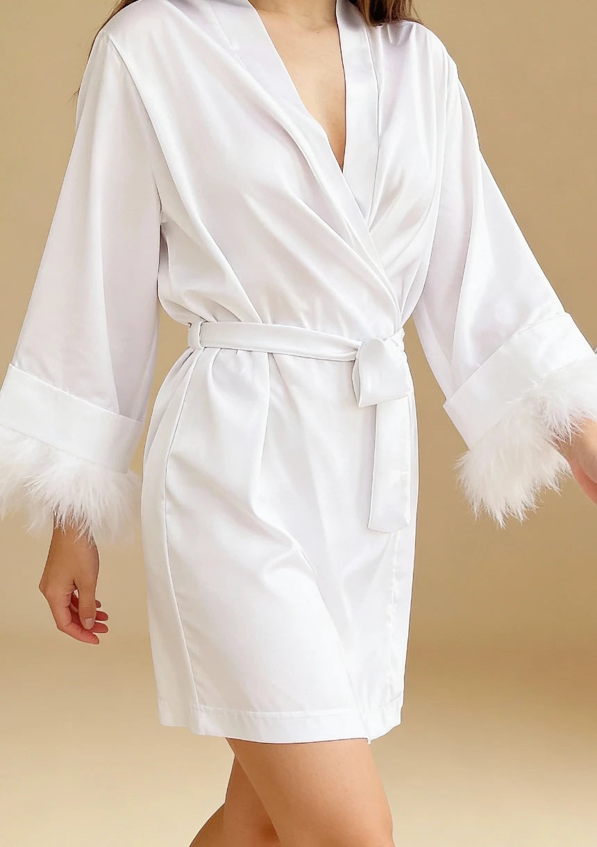 Odkryj urok tego eleganckiego szlafroka, który łączy w sobie luksus i wygodę. Jego satynowy materiał sprawia, że poczujesz się wyjątkowo, a stylowe futerko na mankietach dodaje mu niepowtarzalnego charakteru.