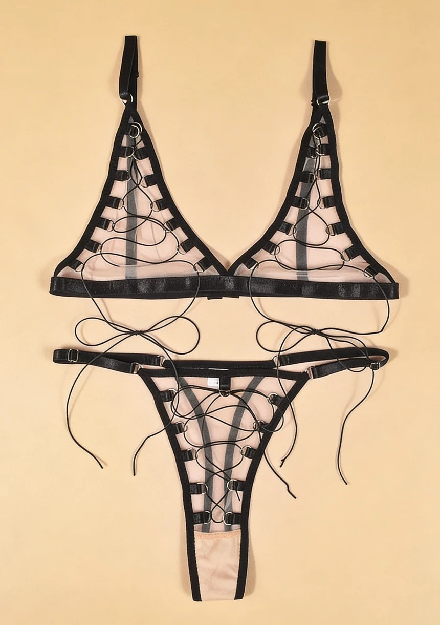 - Komplet bielizny - zawiera biustonosz, stringi, podwiązki oraz choker