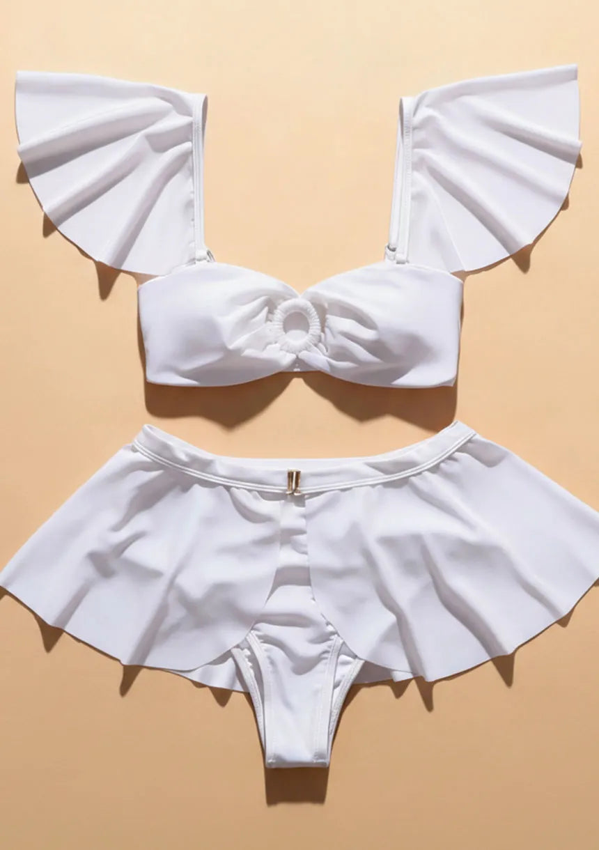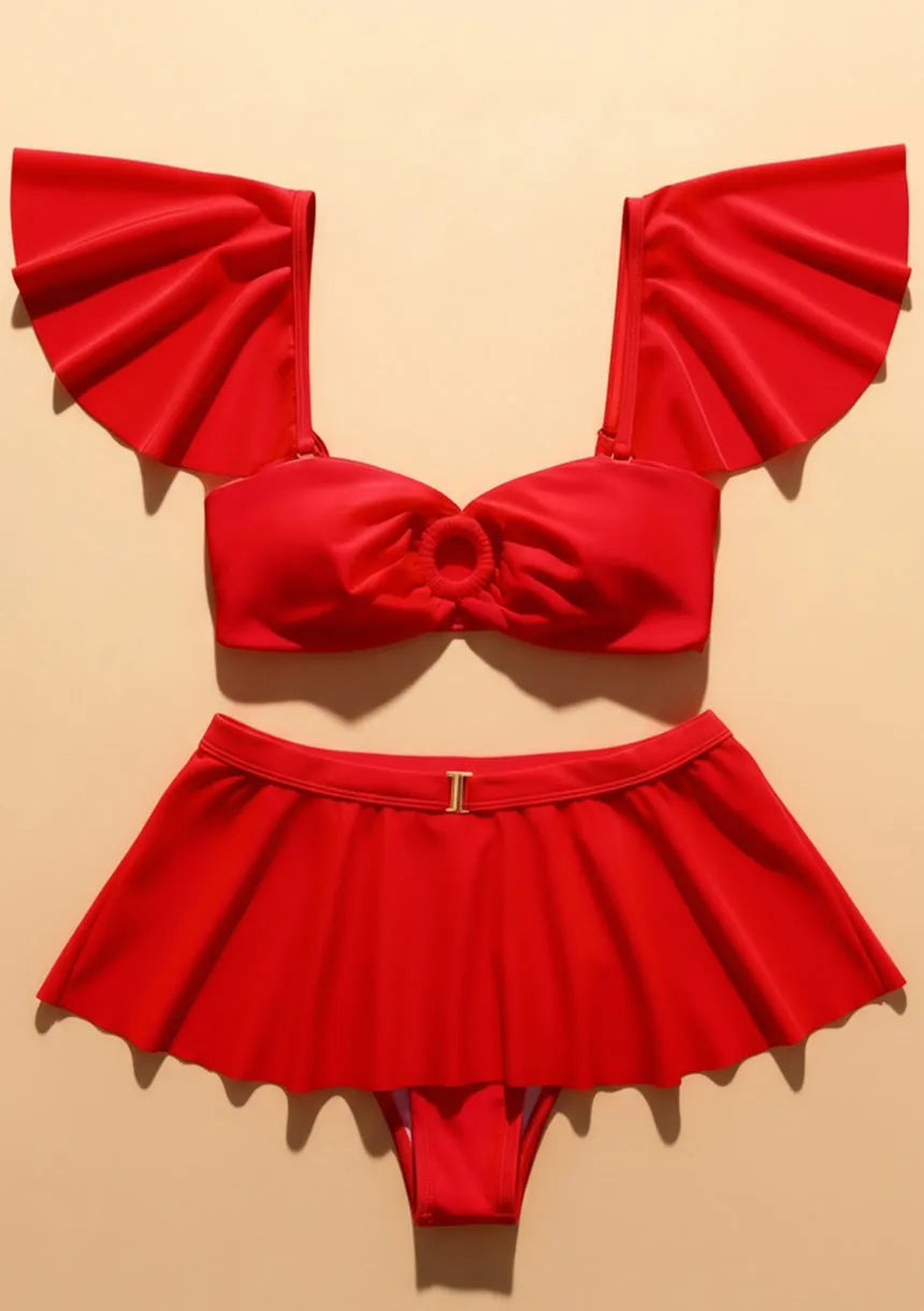 Oryginalny strój kąpielowy dwuczęściowy falbanka – spódniczka