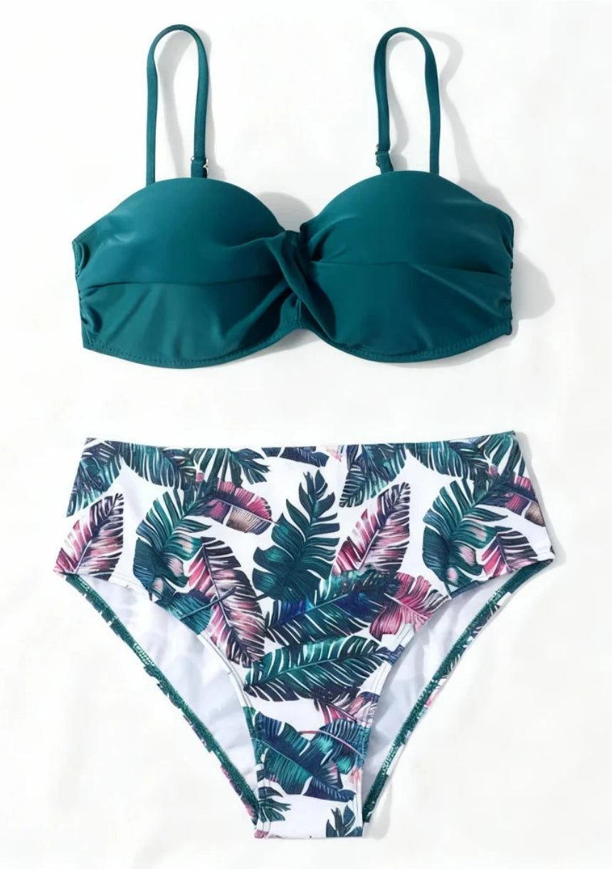 Marzy Ci się wyjazd na plażę, ale nie posiadasz odpowiedniego stroju? Żaden problem! Na maybella.pl znajdziesz szeroką ofertę strojów kąpielowych bikini. Doskonałą letnią propozycją może okazać się strój kąpielowy dwuczęściowy z gładką górą. Bikini zostało zaprojektowane w bardzo nowoczesnym kroju. Biustonosz jest kobiecy, a majtki z wysokim stanem doskonale układają się na sylwetce. Strój kąpielowy dwuczęściowy z gładką górą ma modny kolor i wzór. Góra stroju jest ciemnozielona, natomiast dół ma modny nadruk skomponowany z liści palmowych.