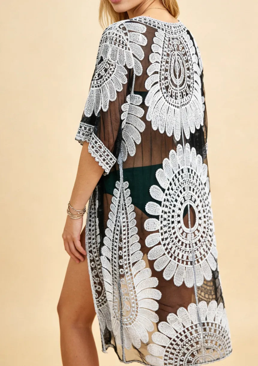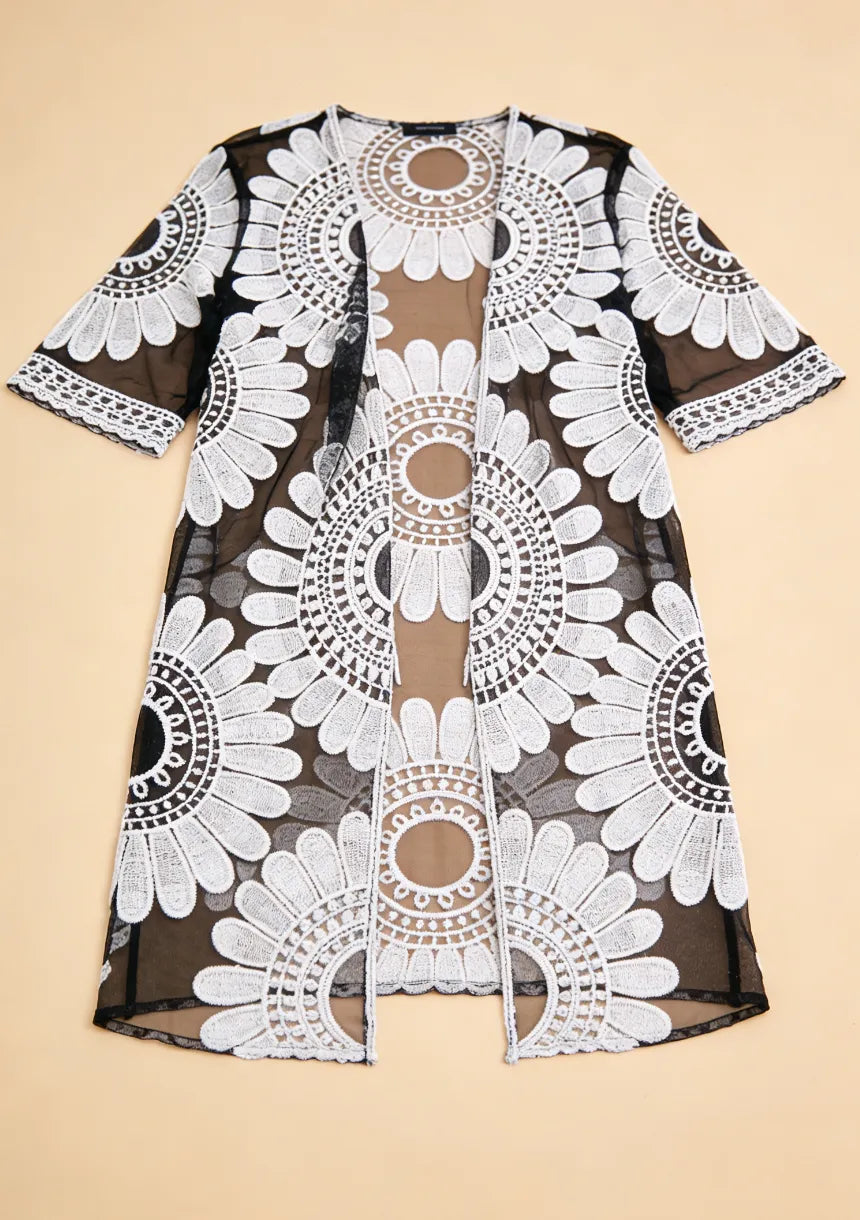 Nasze kimono wykonane jest z cienkiego, transparentnego materiału zdobione wzorem w indyjskie kwiaty. Narzutka jest dostępna w trzech modnych kolorach - wybierz swój ulubiony!