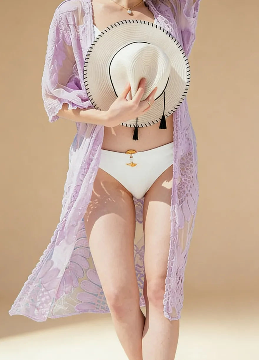 Transparentne kimono plażowe z motywem kwiatów