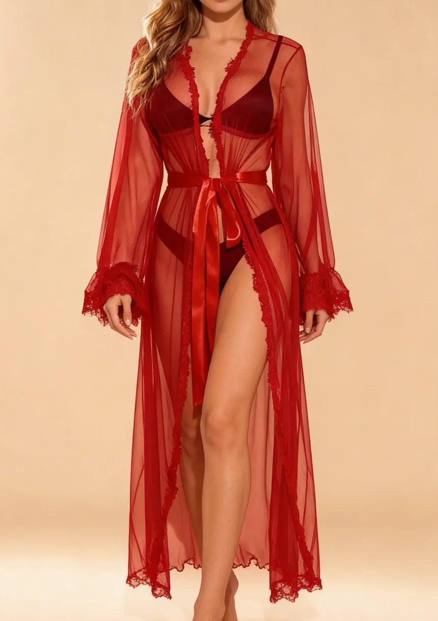 Transparentny peniuar damski pozwoli Ci się czuć komfortowo i jednocześnie bardzo seksownie. Delikatny, transparentny materiał nadaje mu lekkości, co w połączeniu z koronkowym wykończeniem daje zniewalający efekt. Wiązanie w pasie wyszczupli i zaakcentuje Twoją sylwetkę. To idealna propozycja, jeśli chcesz wzbogacić swoją garderobę o wyjątkowy, elegancki strój domowy. Peniuar może być zakładany na nagie ciało czy zmysłowy komplet bielizny. Z jego pomocą podkreślisz atuty swojej sylwetki. Prezentowany model dostępny jest w trzech kolorach - romantycznej bieli, seksownej czerni oraz ognistej czerwieni. Który z nich wybierzesz?